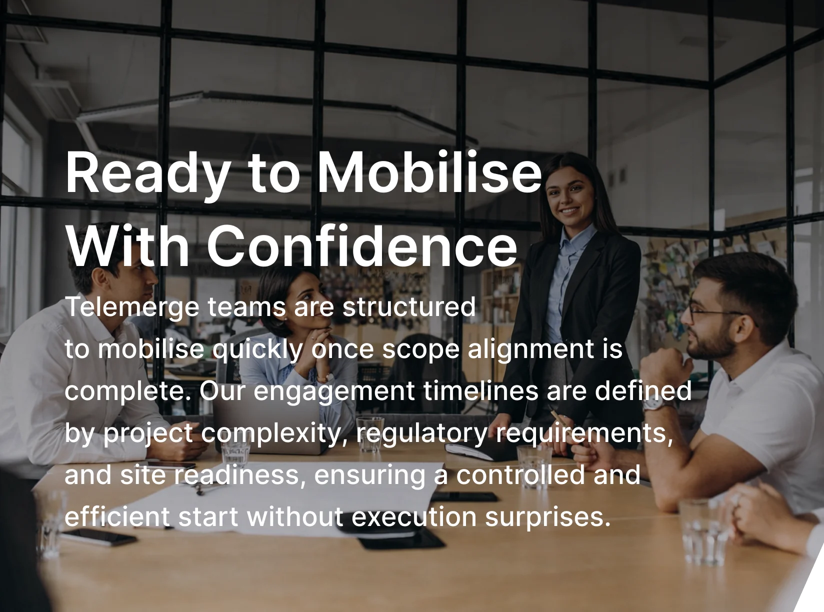 Telemerge teams are structured to mobilise quickly once scope alignment is complete. Our engagement timelines are defined by project complexity, regulatory requirements, and site readiness, ensuring a controlled and efficient start without execution surprises.